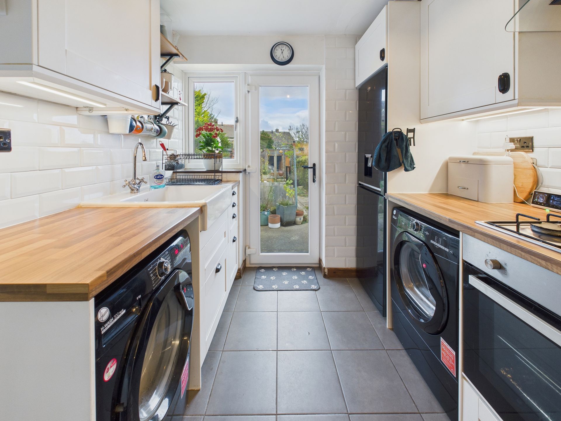 - Modern Galley Kitchen with Integrated Appliances