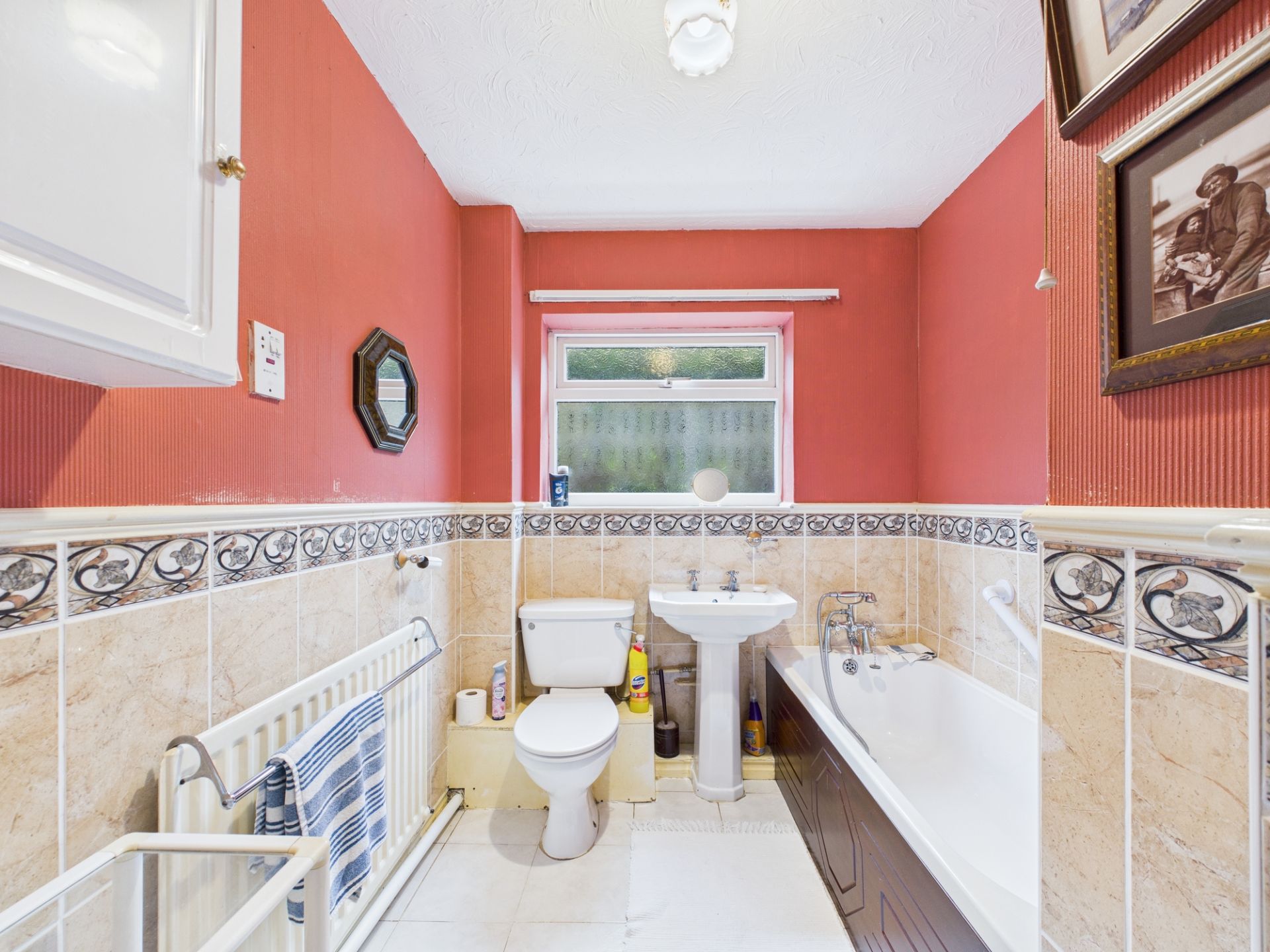 Two double bedrooms offer comfortable proportions, whilst the bathroom's four-piece suite demonstrates the space available for modern updating. Oil central heating and double-glazing throughout provide essential infrastructure, ensuring the property remains practical during renovation works.