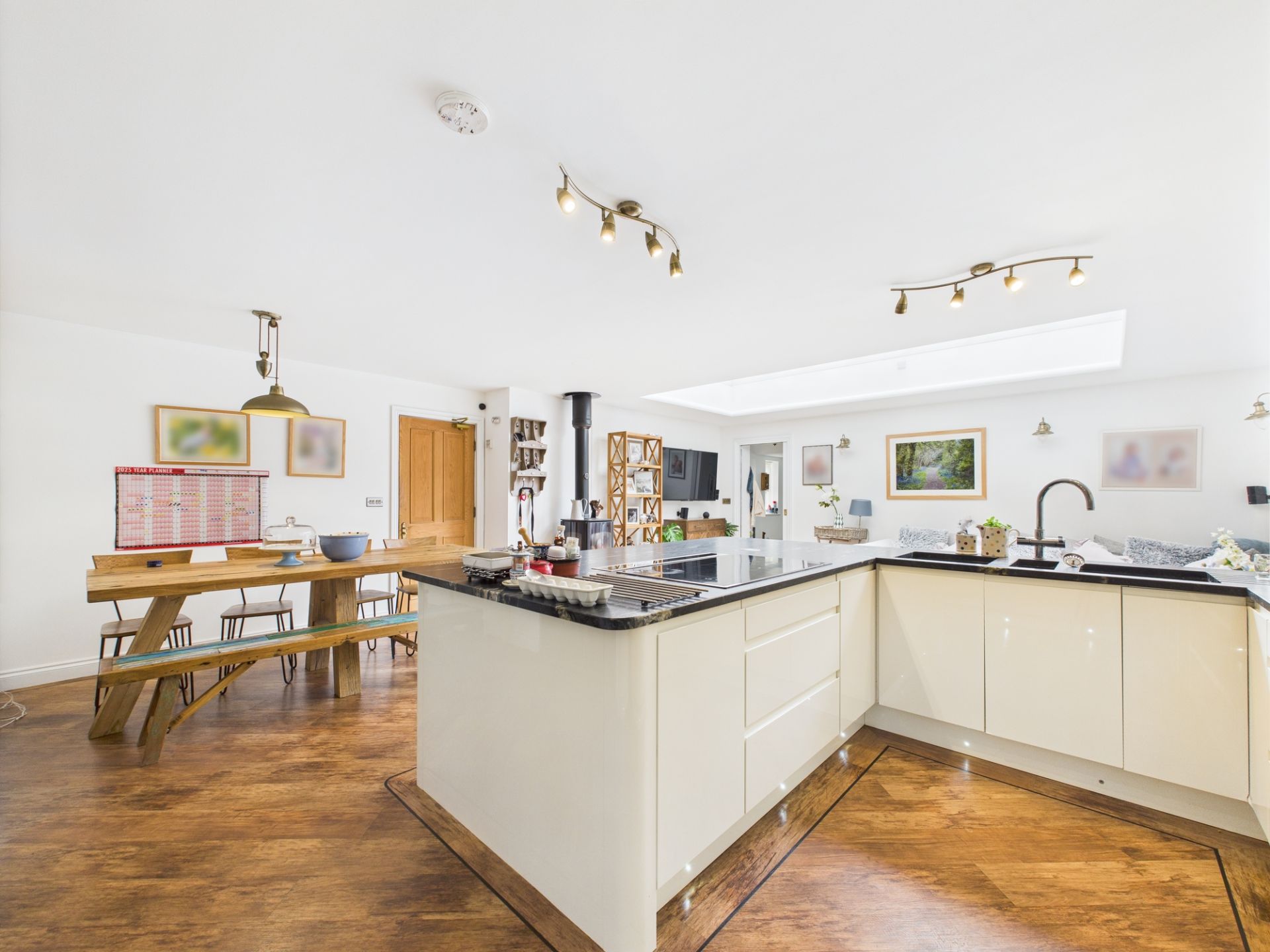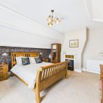 Period enthusiasts will appreciate the wealth of original features throughout, including stunning stained-glass windows that bathes the entrance hall in coloured light and an elegant carved balustrade that speaks to the craftsmanship of a bygone era. The generous breakfast room, enhanced by an original marble fireplace and charming bay window, provides an inviting space for guests to start their day. The large open-plan living room, kitchen and dining area is truly spectacular - crowned by an impressive lantern window that floods the space with natural light and featuring a cosy log burner that creates the perfect private space for the owners to relax with family.