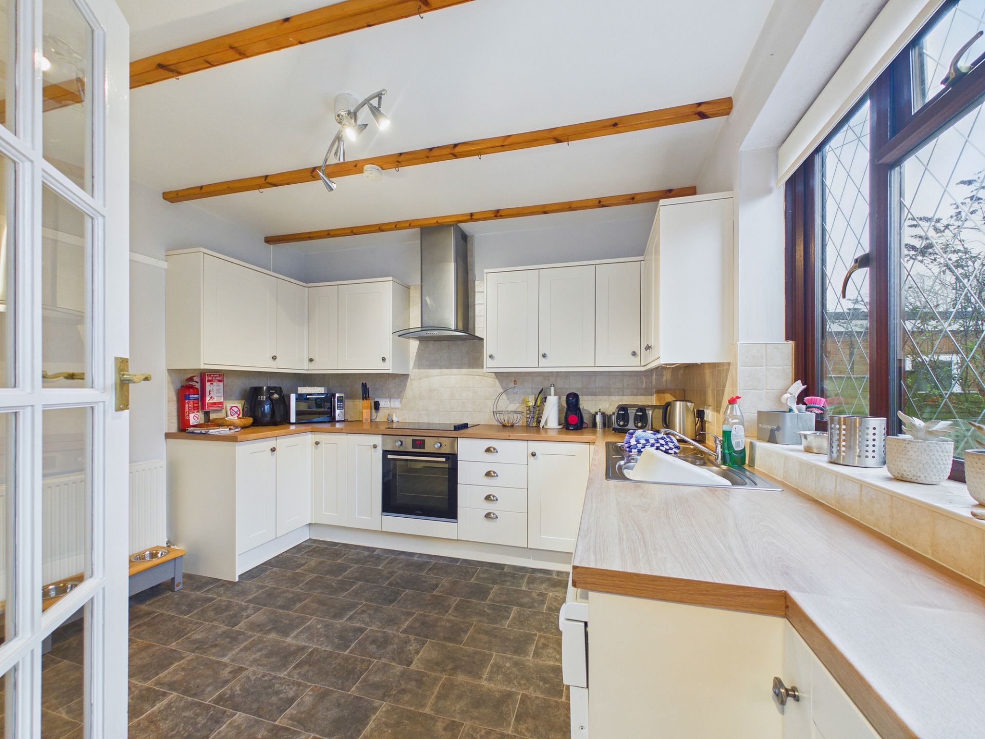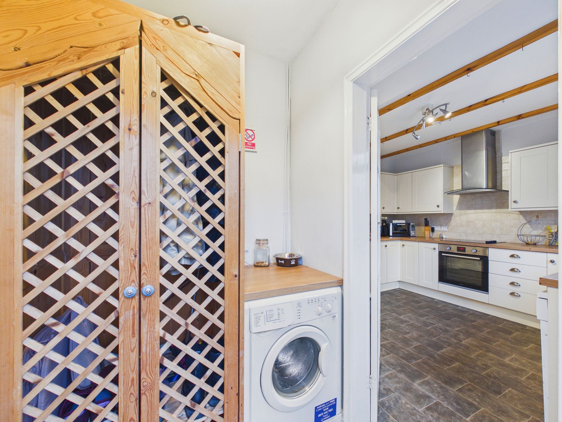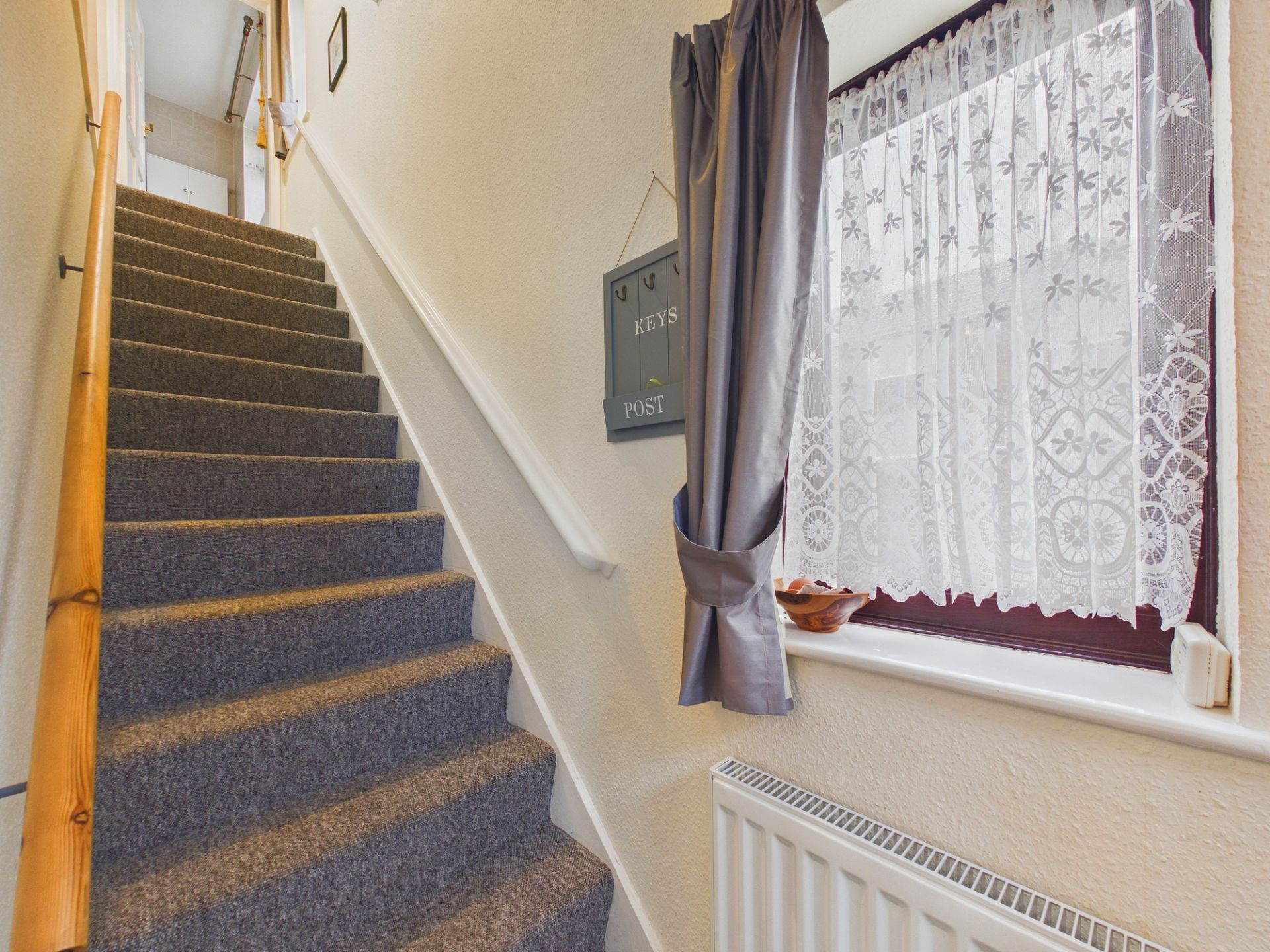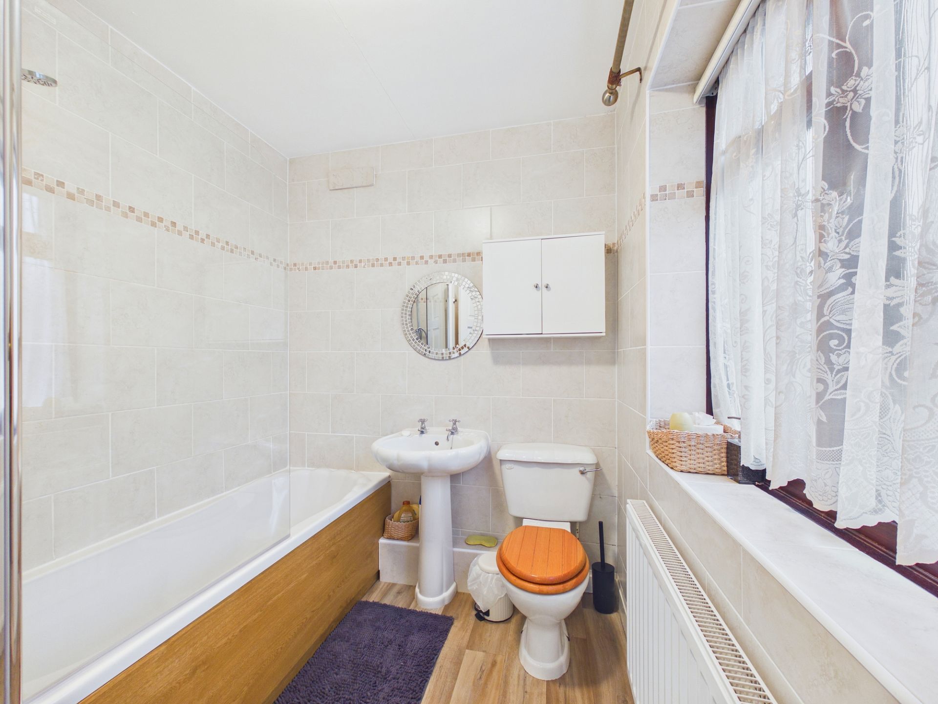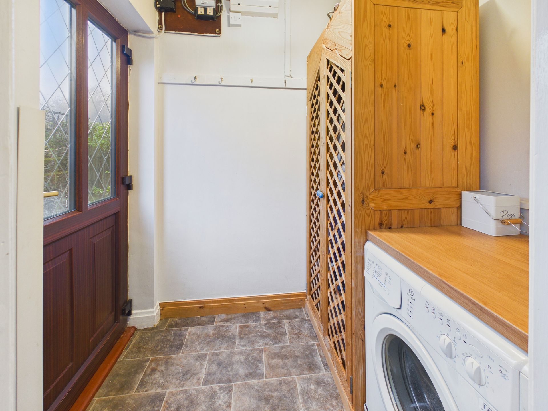 Extending to approximately 750 square feet, the accommodation is well-considered throughout. The lounge and dining room provides a welcoming reception space, with a bay window flooding the room with natural light and a fireplace lending warmth and character to the colder months. The kitchen is fitted with integrated appliances and complemented by a useful utility room, a practical addition that proves its worth in daily life. Three bedrooms and a family bathroom suite complete the upper floor arrangement, with gas central heating and double-glazed windows ensuring year-round comfort.