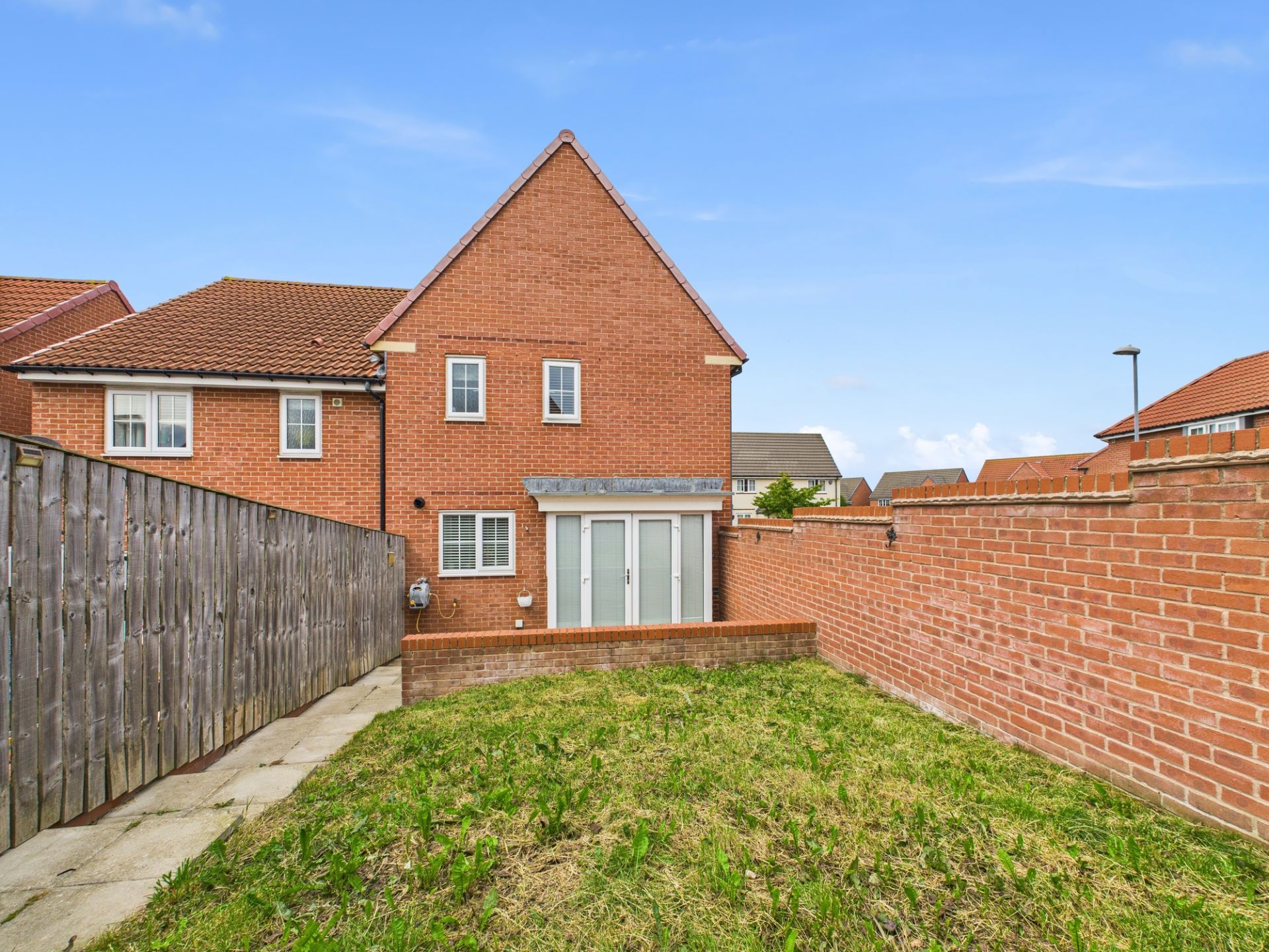 This modern semi-detached house has a walled garden and is located on the popular Scoresby Park in the coastal town of Whitby. Built in 2014 by Barratt Homes this property has been well-maintained and is energy-efficient with having modern gas central heating and double-glazing throughout. Downstairs there is an entrance hall with a separate WC, a lounge to the right hand side of the house and to the left an open plan kitchen/diner with French Doors to the rear garden. The kitchen has fitted cabinets with integrated appliances. Upstairs there are three bedrooms comprising two doubles and a single, with the principal bedroom having an en-suite bathroom, plus there is a family bathroom. Outside there is a patio area and a raised garden, there is also a rear gate which leads to the driveway and garage.