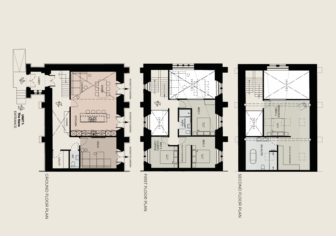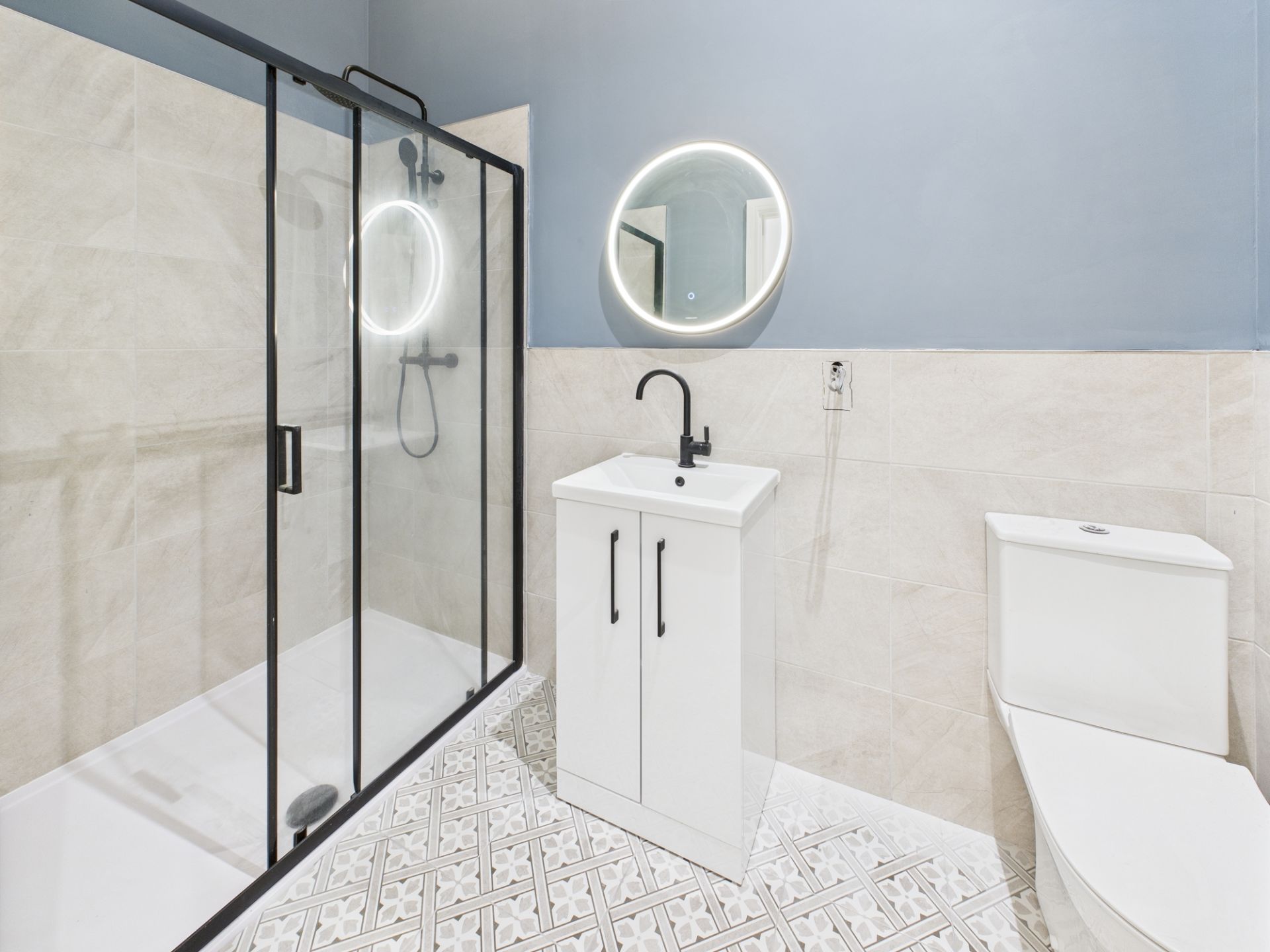 Two sumptuous bathrooms showcase contemporary design excellence, while the comprehensive heating system combines efficient air source heating with indulgent underfloor warmth throughout.